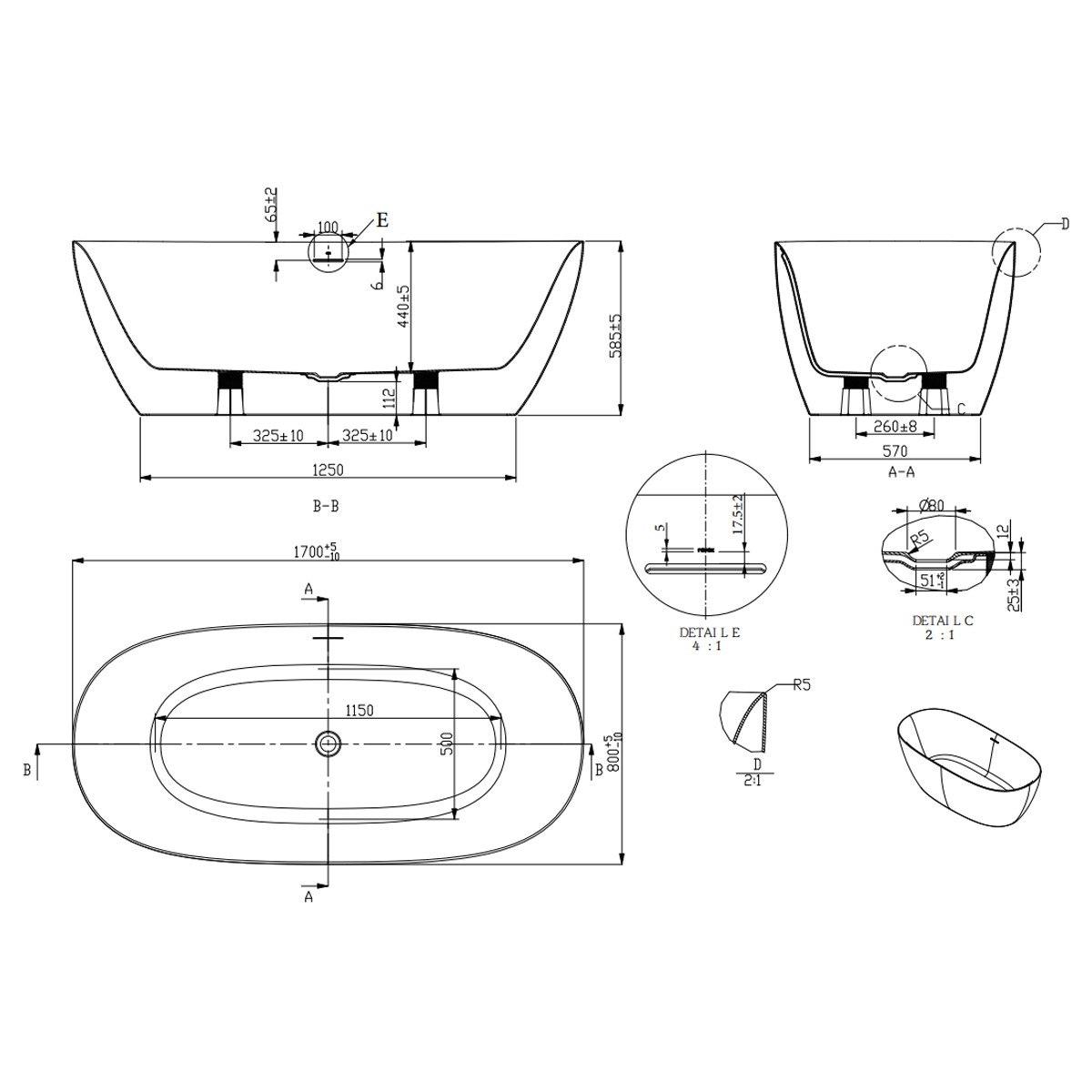 Ванну не можна доповнити шторою для ванн. Усі комунікації повинні прокладатися нижче рівня підлоги (стік, виведення холодної/гарячої води для підлогового змішувача). У комплектацію виробу входять ніжки, перелив і злив. Стічний комплект для ванни необхідно докупити окремо. Комбінується з підлоговим окремо стоячим змішувачем FM 080.00.