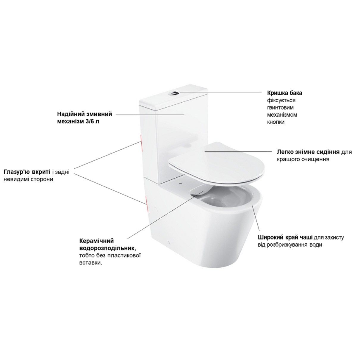 - Система уповільнення SoftClose для складання сидіння унітазу.