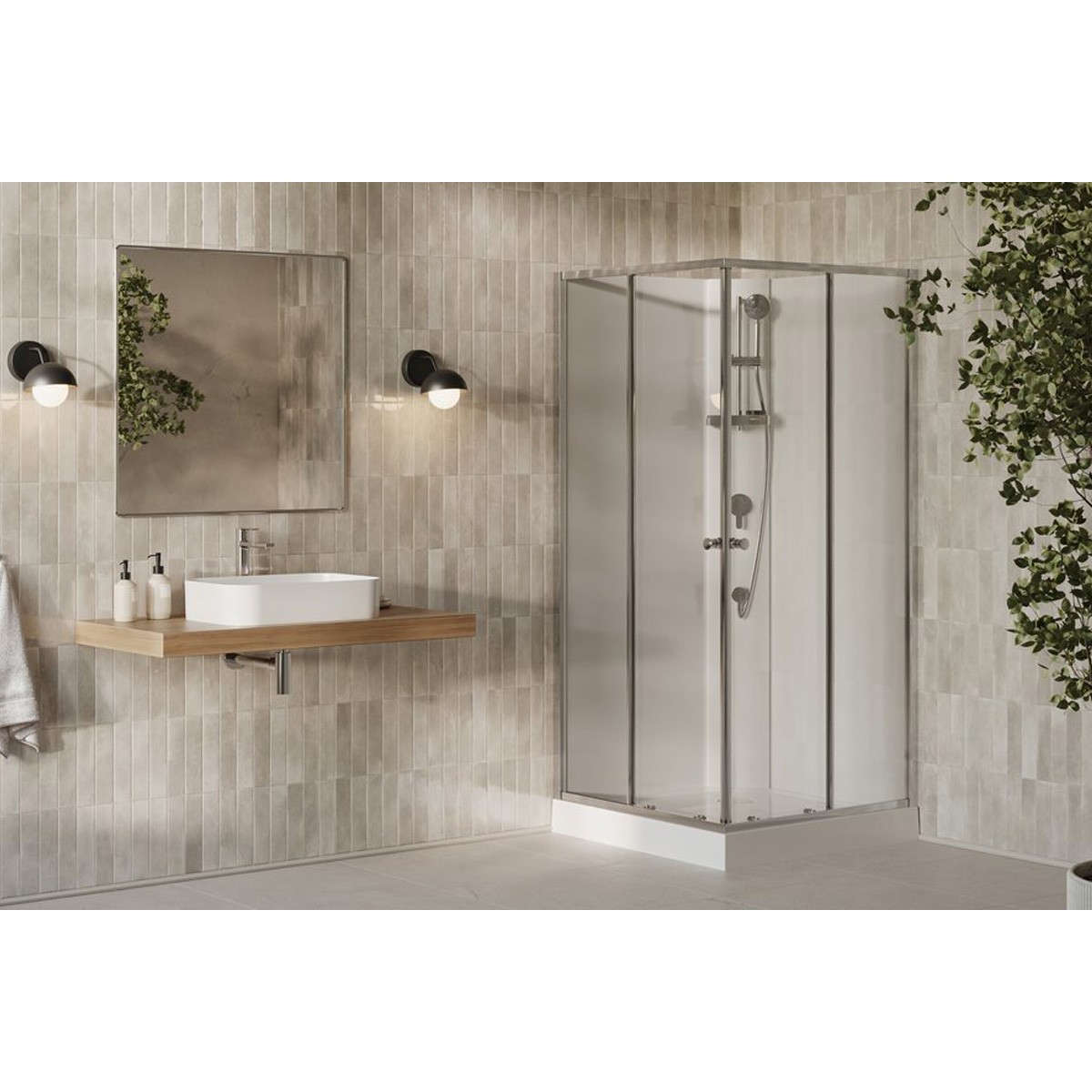 У комплект також входять акриловий душовий піддон, сифон, змішувач для душу, штанга для душу, душова лійка та душовий шланг.